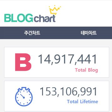 블로그순위정보는 블로그차트 사이트에서 확인하실 수 있습니다. (www.blogchart.co.kr) 주소도 아주 쉽죠? 간단하게 가입을 하고 내 블로그 정보를 등록하게 되면 바로 내 블로그의 랭킹(순위)를 알 수 있게 됩니다.