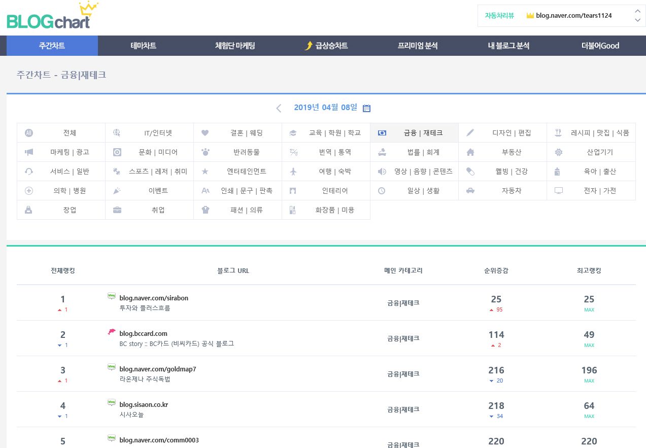 금융제테크 분야에 상위에 랭크되어 있는 블로그는 역시나 네이버에서 압도적으로 1~10위내에 차지 하고 있습니다. 그중에 몇 개 블로그를 들어가서 확인해본 결과 하루에 방문자가 3000~5000명정도 되는 것 같습니다. 제 블로그의 방문자가 500명정도 수준인 것을 감안했을 때 아직도 갈길이 머네요.. ^^