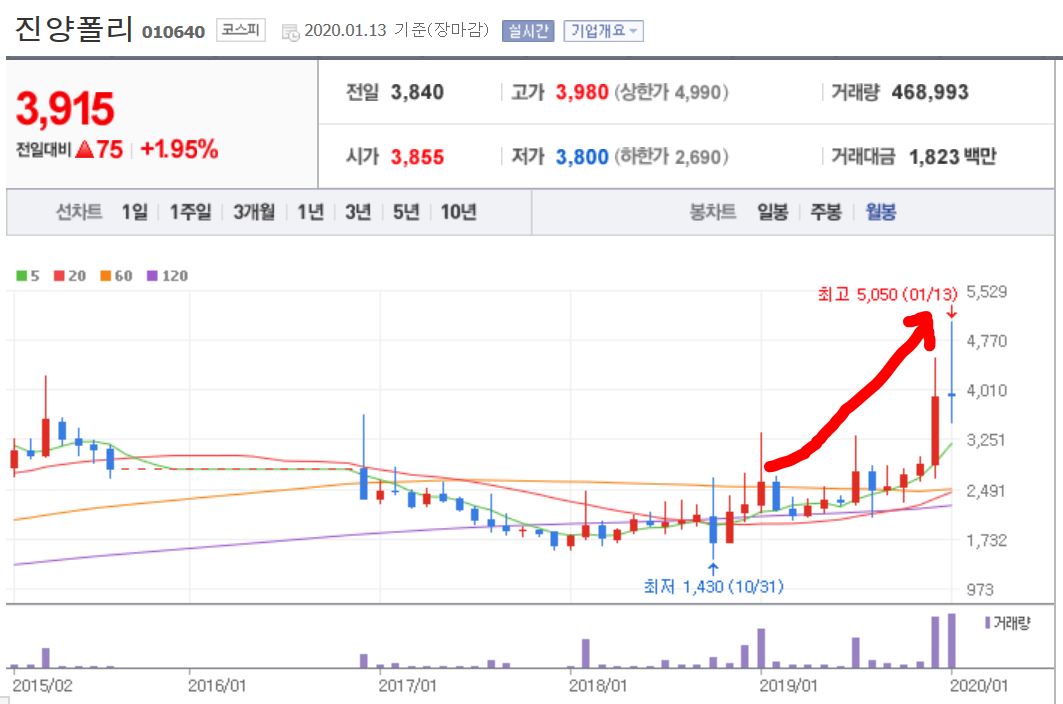 이런 현상이 바로 주가에 반영이 된 것입니다. 2천원대의 주가가 5천대까지 2.5배가 상승하는 기염을 토하는 현상이 발생을 하였습니다. 이렇듯 지속적인 성장을 하고 있는 기업, 그리고 저평가되어져있는 기업들은 장기적인 관점에서 분명 큰 매리트가 있고, 이는 주가에도 반영되는 것입니다.