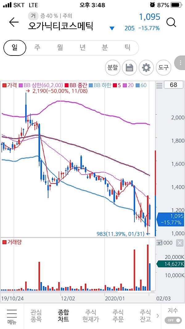오가닉티코스메틱 : 폭락중인데 멈출라나?