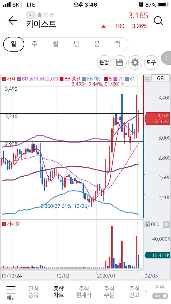 위에 키이스트의 주가 차트를 보시면 일봉상으로 최근 주가가 50%이상 급등을 하는등 지금 주가가 상당히 많이 상승해있는 상태입니다.