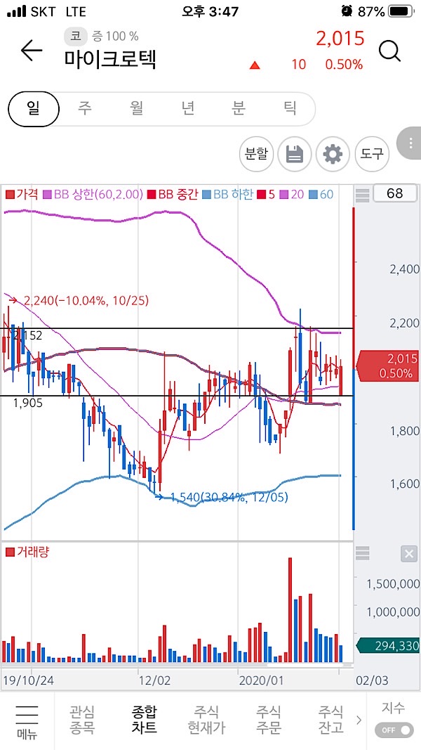 지금 마이크로텍은 거래량이 너무 없는 상태이기도 하기 때문에, 만약에 투자금이 많았다면 투자를 들어갔을지는 모르겠네요.