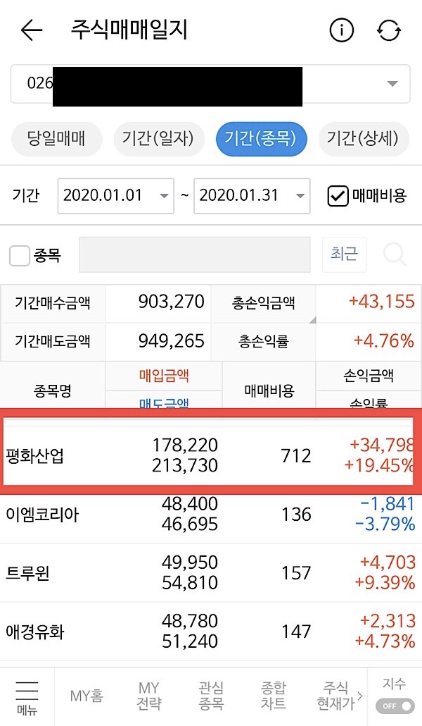 사실 1만원정도의 수익이 났다라고 위의 포스팅에서 작성을 하였지만, 평화산업이라는 너무 좋은 종목이 있어서 바로 하루짜리 단타 투자를 진행하였고, 아래의 이미지와 같이 3만5천원정도의 수익을 발생하였습니다.