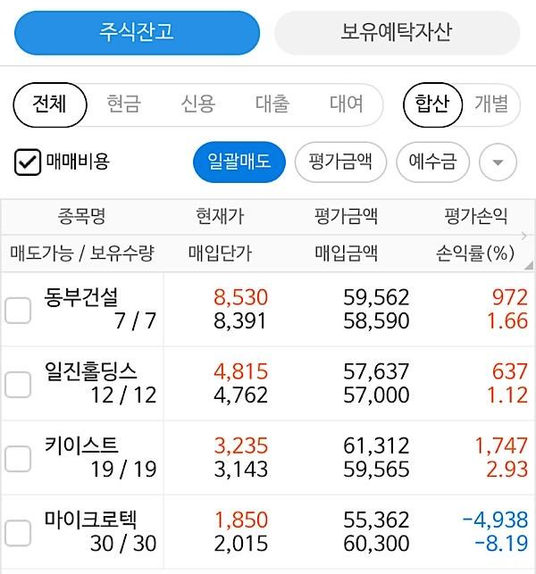 | 동부건설 | 8,370원(7주) | 홀딩 | - |