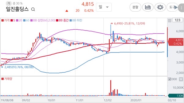 일진홀딩스 볼린져밴드 중심선 지지 중