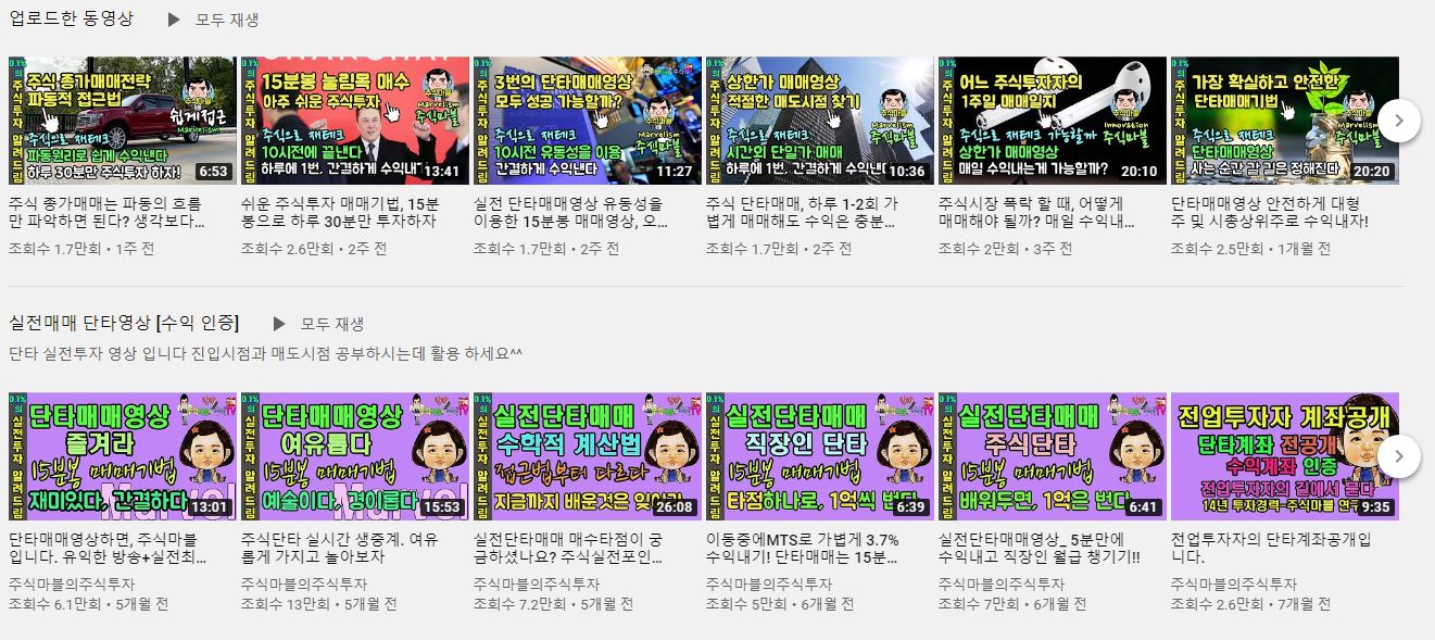 매매영상보다는 시황에 대한 설명이 주를 이르고, 그날그날 거래량 상위에 대한 종목들을 보면서 차트를 짚어주고, 시장의 흐름을 이해하기 쉽도록 알려주고 있는 영상들이 매일매일 올라오고 있습니다.