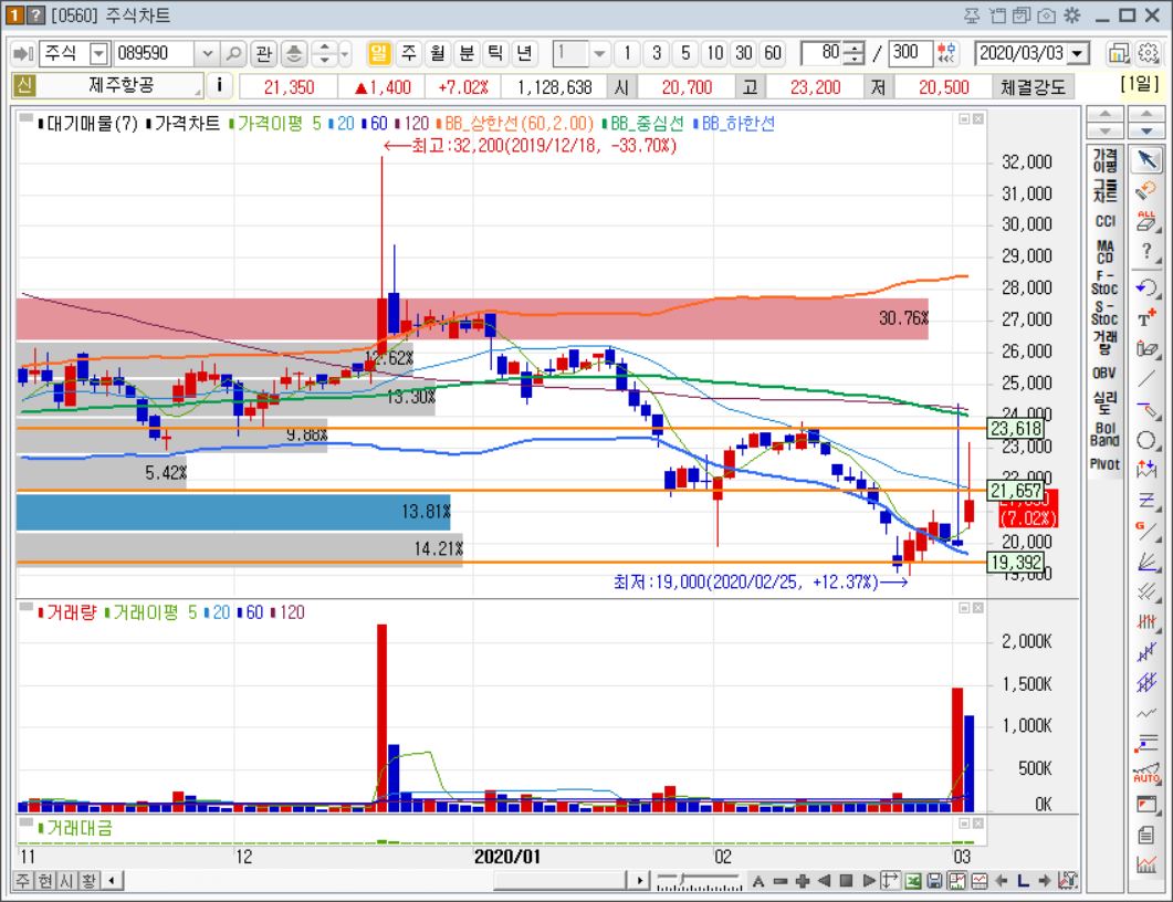 제가 2개의 라인을 그려놓았는데, 저 구간까지 주가가 내려와서 제일 아래의 구간을 이탈하지만 않는다면, 단타로 한 번 진입을 해볼 수 있을 것이라고 생각이 됩니다.