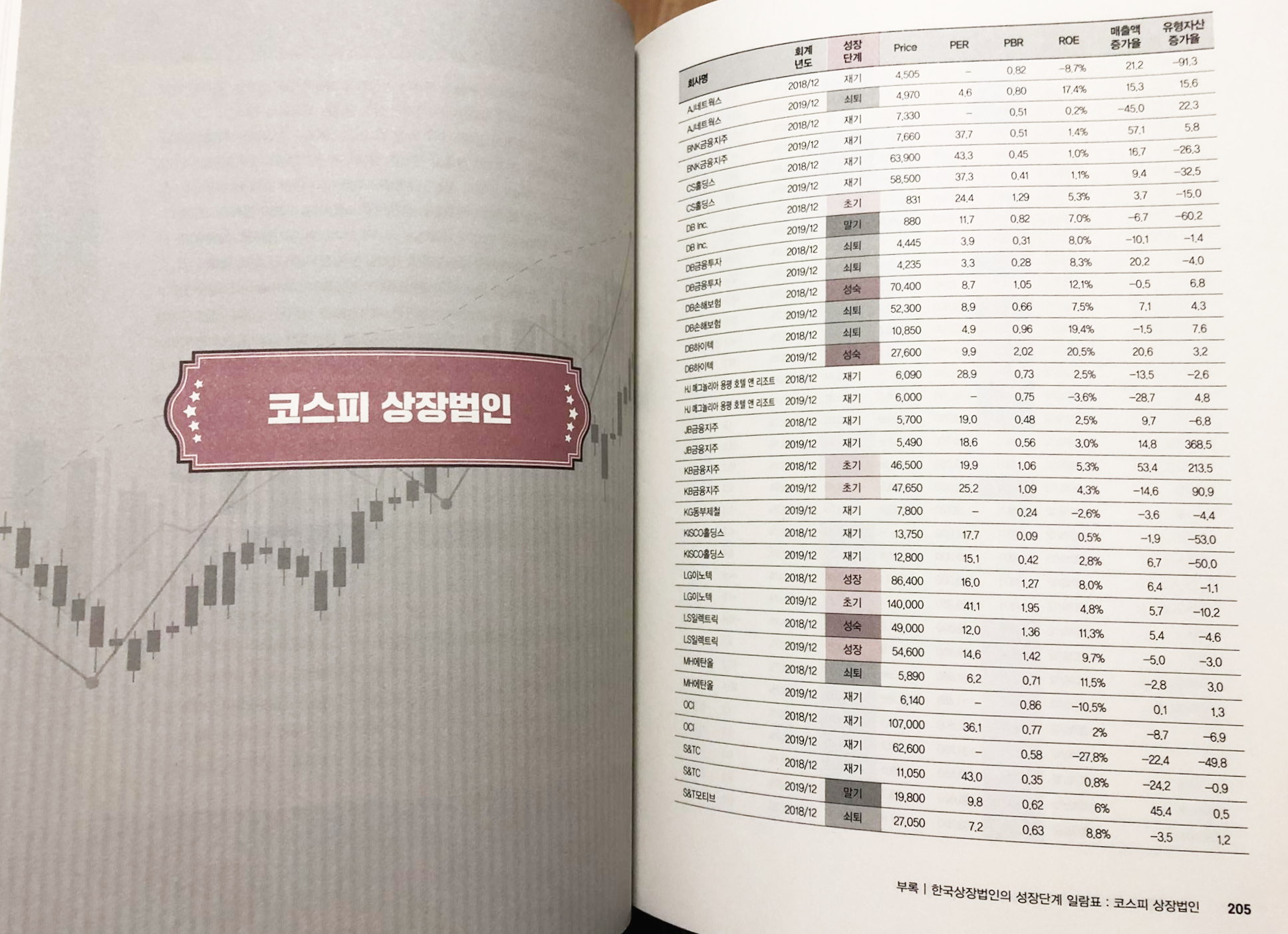 책에서 부록으로 제공하는 코스피 상장법인의 성장단계 표기내역은 굉장히 유용한 자료라고 생각한다. 내가 관심종목으로 꼽아놓은 종목을 찾아서 미래가치가 잘 반영되는지 살펴보고 공부해본다면 도움이 될 것 같다.