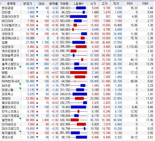 그리고 내가 관심있게 보는 종목을 HTS에서 PER, PBR, ROE를 표시해둔다면 내가 투자한 기업의 고평가/저평가 여부를 파악할 수 있을 것이다. (관심종목 설정화면에서 PER, PBR 추가)