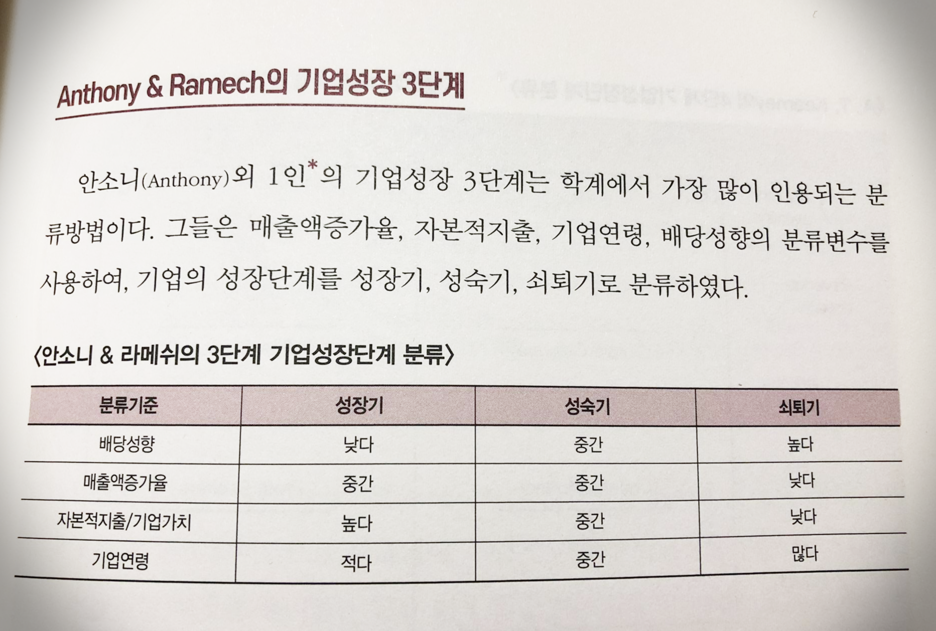 <안소니 & 라메쉬의 3단계 기업성장단계 분류>