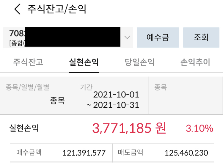 삼성증권 주식투자 수익 21.10월 - 377만원