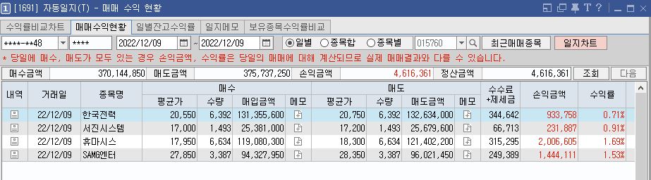 | 매수일 | 2022.12.09 | 매도일 | 2022.12.09 |