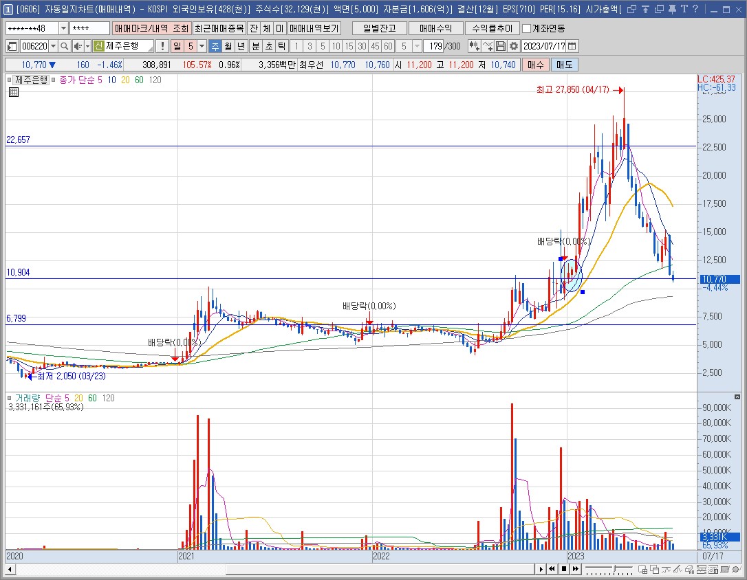 제주은행 : 매매마크 내역 (쫄보같은 매매)
